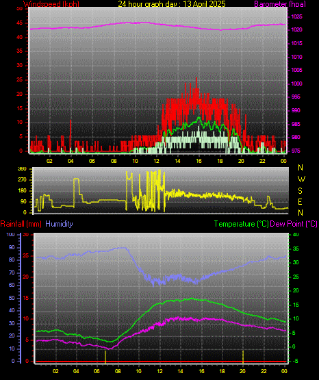 | Μέγιστη ταχύτητα ριπών ανέμου | 18.5 km/h στις 113°(ΑΝΑ) τον 04 στις 12:45 |
