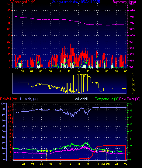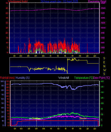 | Μέγιστη ταχύτητα ανέμου | 9.3 kmh στις 293°(ΔΒΔ) τον 10 στις 06:39 |
